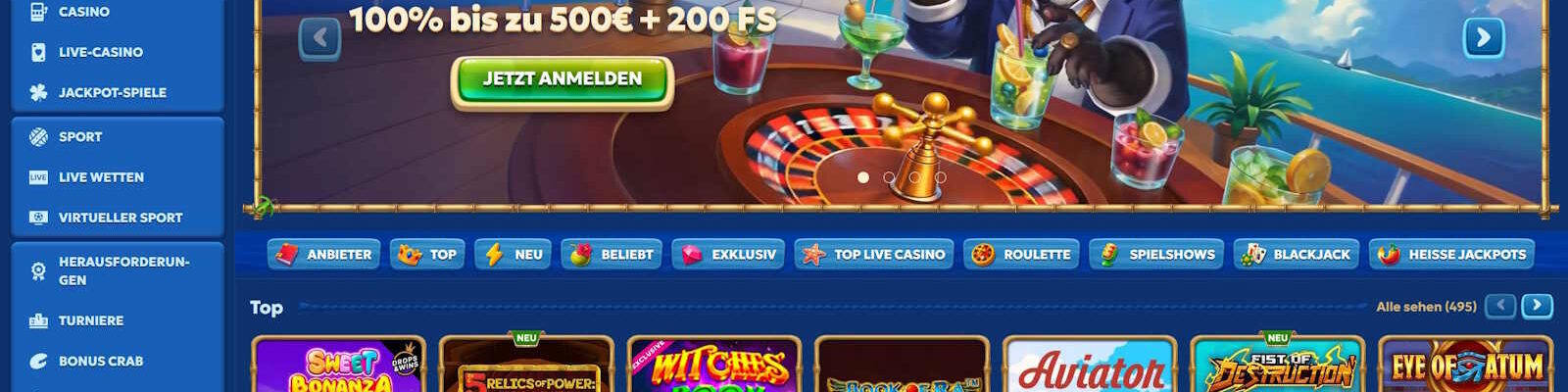 Bonusguthaben bis 500 € + 200 FS