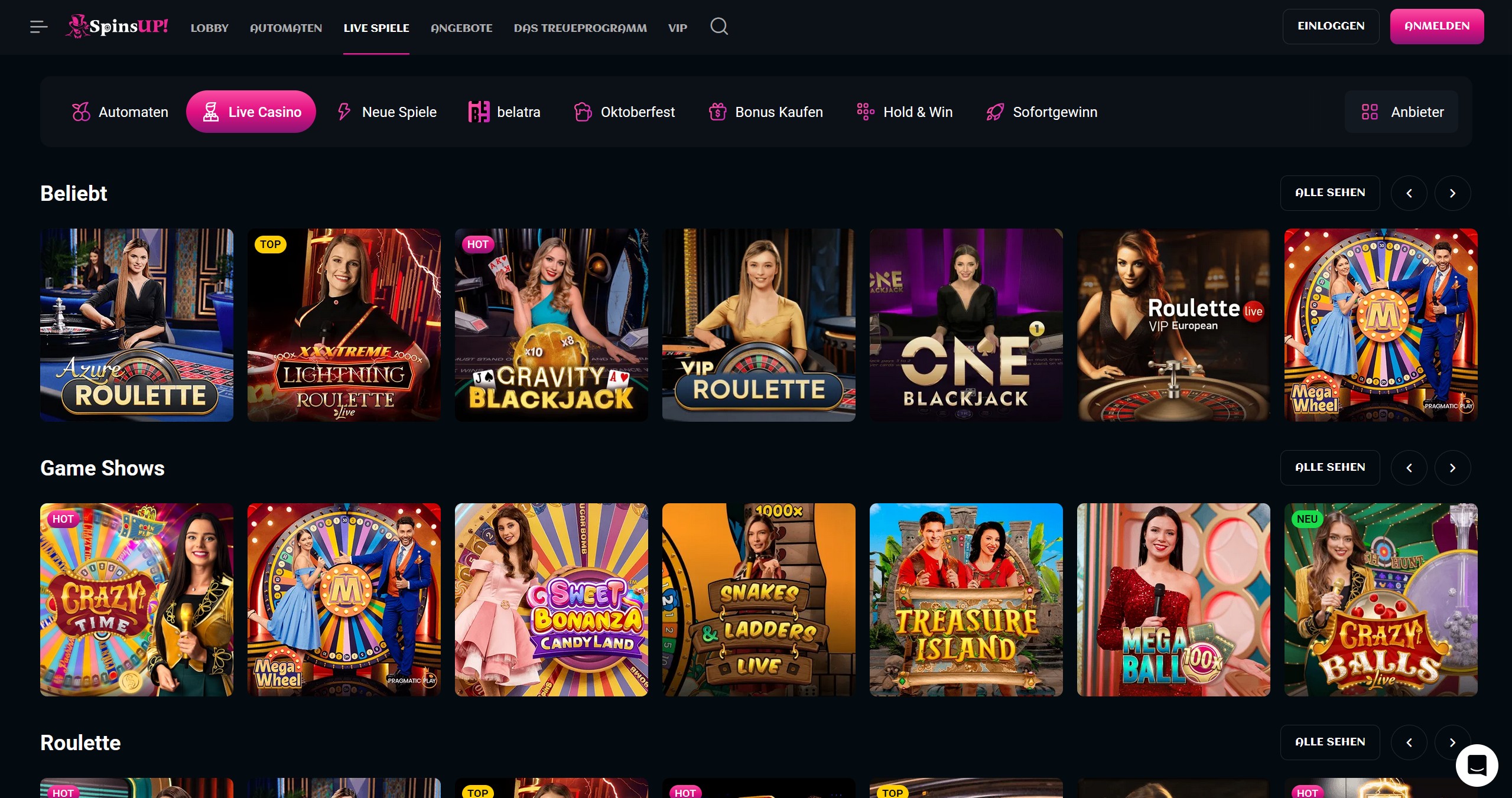 Viele wichtige Details zum SpinsUP Casino Online im Überblick.